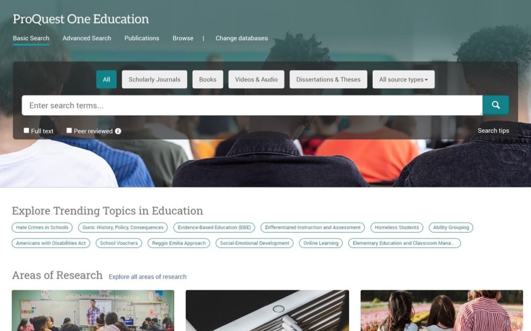 ProQuest One Education brings together the content needed for study and research of education onto an intuitive and user-friendly interface created specifically for the discipline.